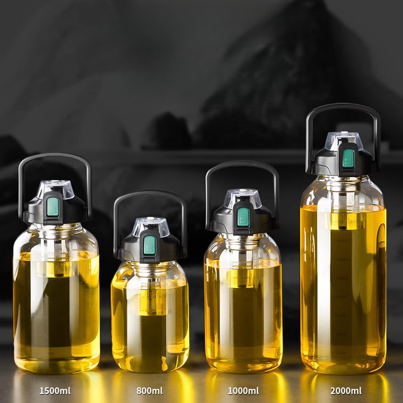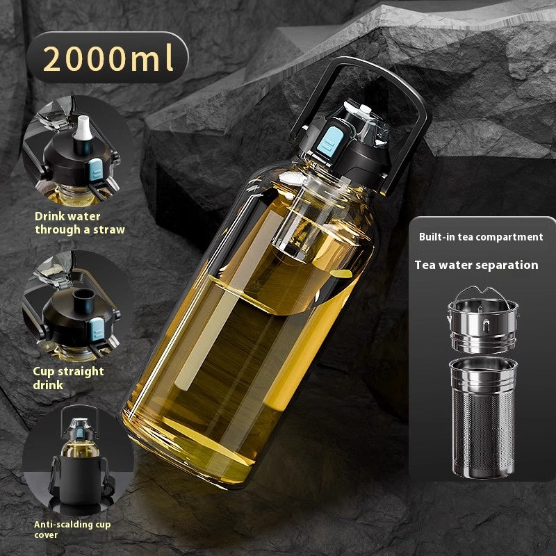 Premium Large Capacity Heat-Resistant Glass Tea Separation Cup – 800–2000ML Transparent Portable Sports Cup with Lid and Straw – Ideal for Outdoor, Daily Use & Gift Giving
