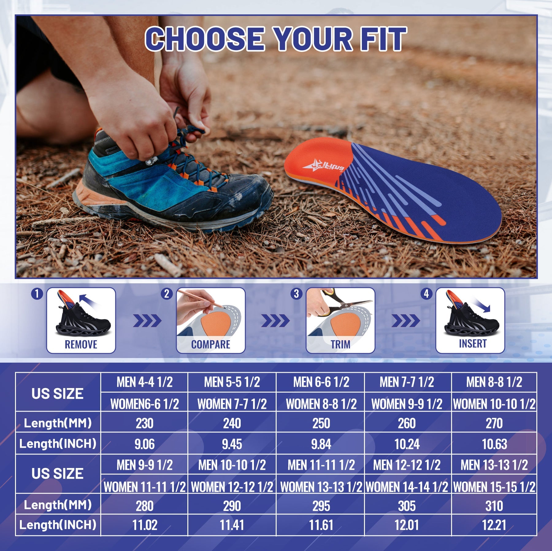 Adaptability: Fits sports shoes, work boots, casual footwearno trimming required