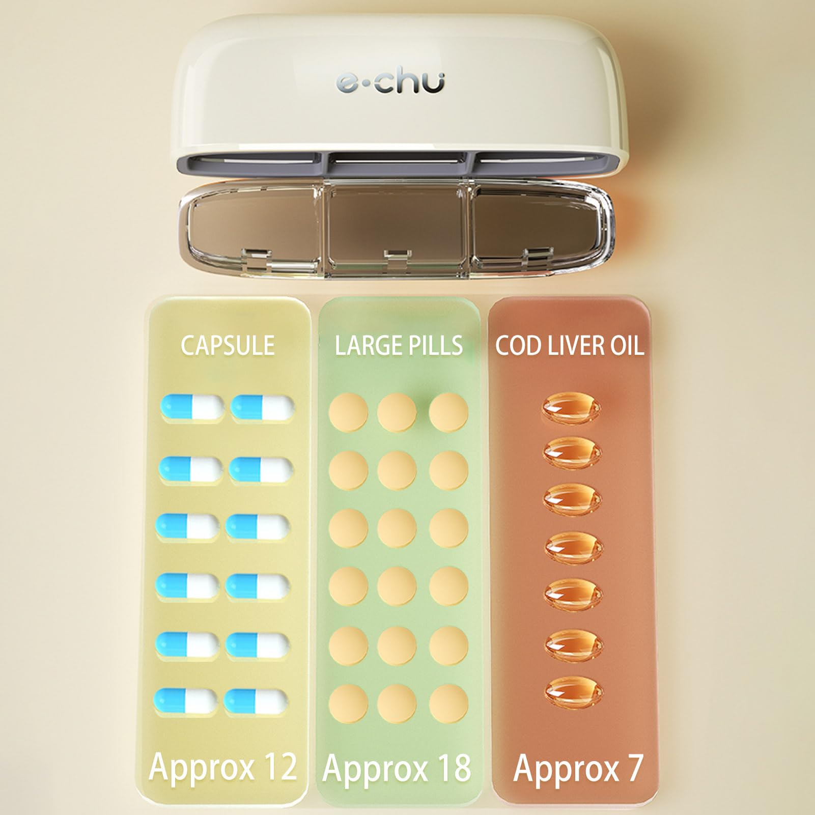 • Fill each compartment with your morning/noon/night doses (or custom schedule)