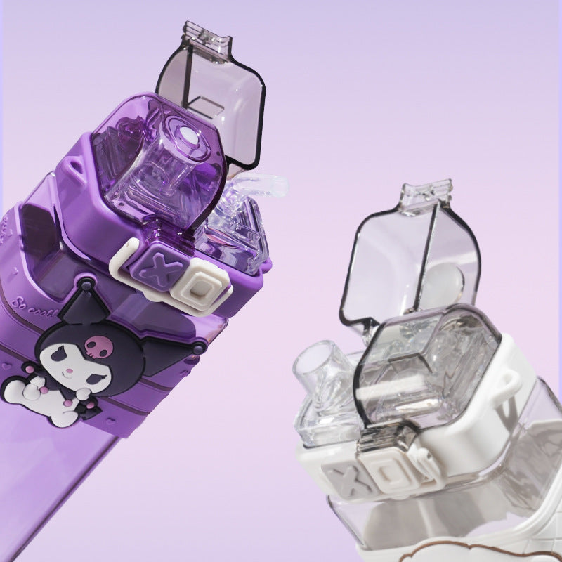 Premium Sanrio Cartoon Water Bottle 520ML, Double Drink Cup for Students, Leak-Proof Cute Plastic Bottle Featuring Melody, Kuromi, Cinnamoroll & Pompompurin