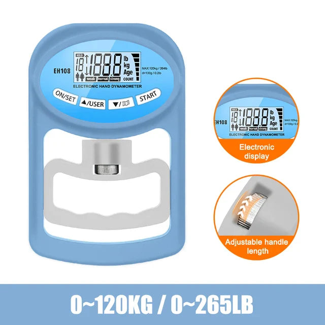 Build stronger hands and get precise measurements with the Premium Grip Strength Tester. This digital hand dynamometer delivers up to 265 lbs (120 kg) readings with a high-precision strain gauge, a clear LCD, and USB rechargeable convenience—perfect for sports training, rehab, and performance tracking at home or in professional settings.
